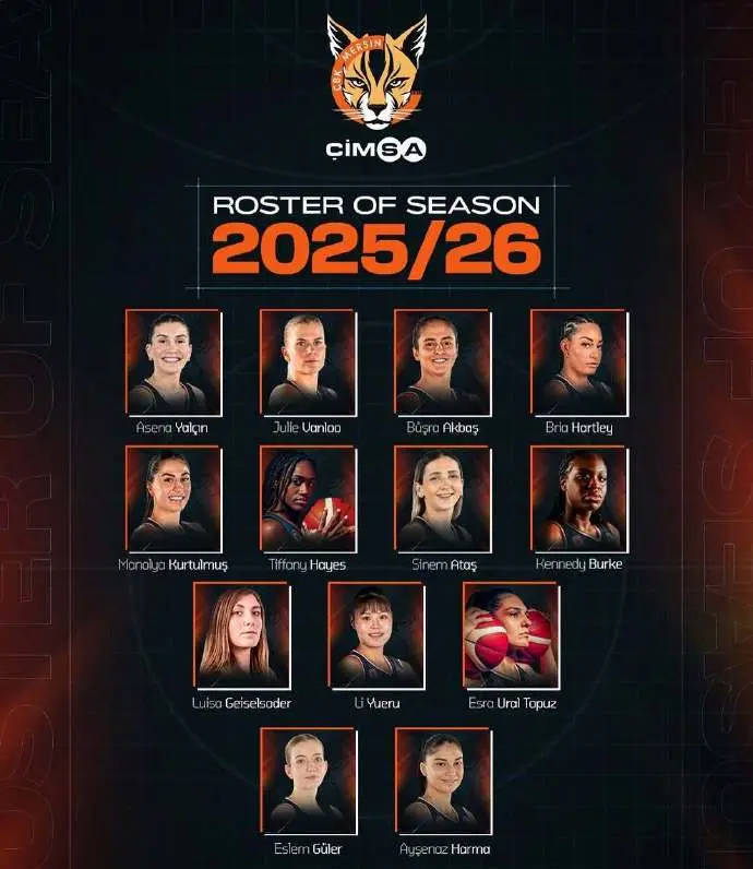 北京时间2025年8月14日,土耳其女子篮球超级联赛球队梅尔辛公布了2025-26赛季球队15人大名单,中国球员李月汝在列。